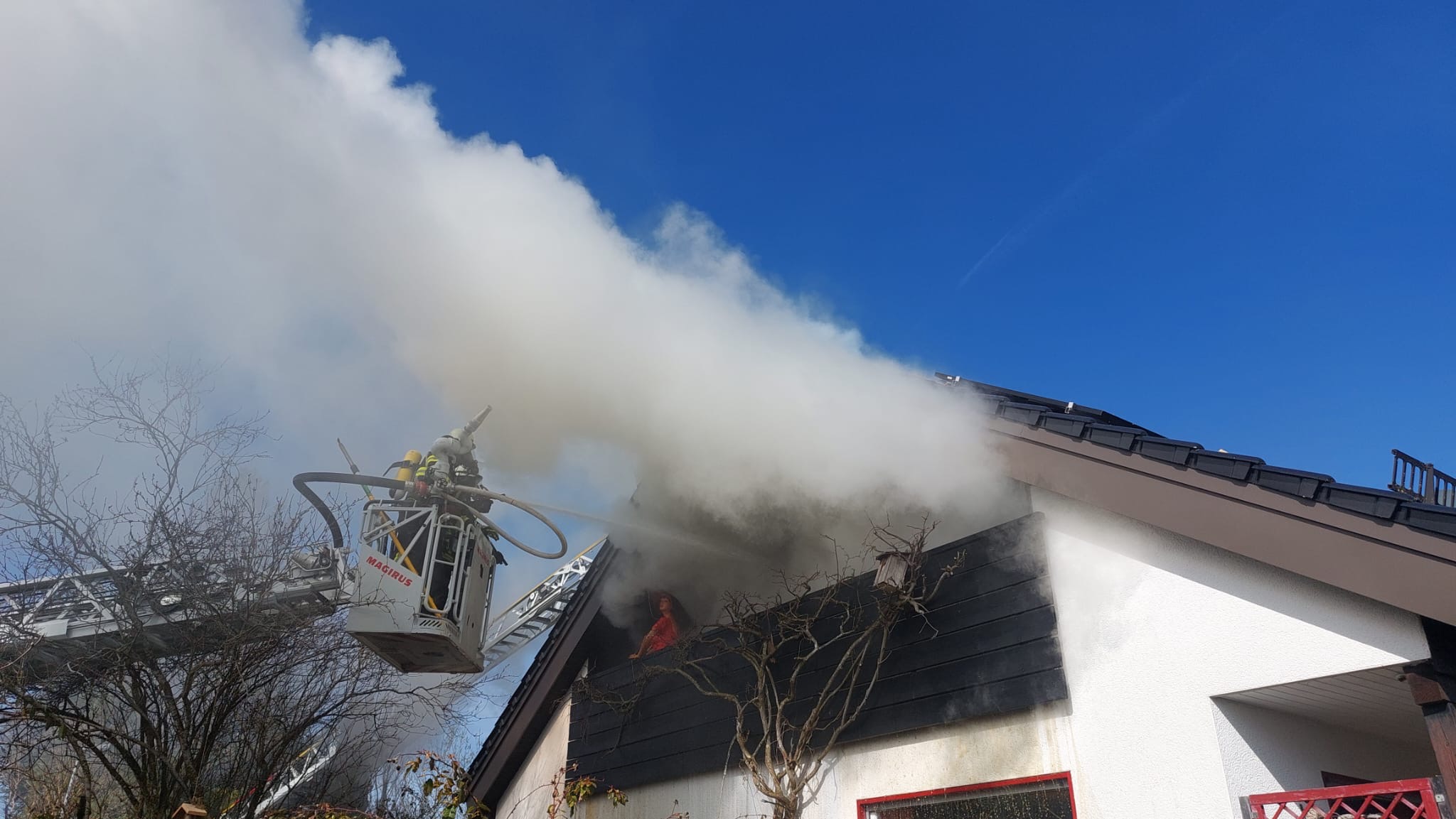 Unterstützung der FF Fronreute bei einem innenliegenden Dachstuhlbrand.