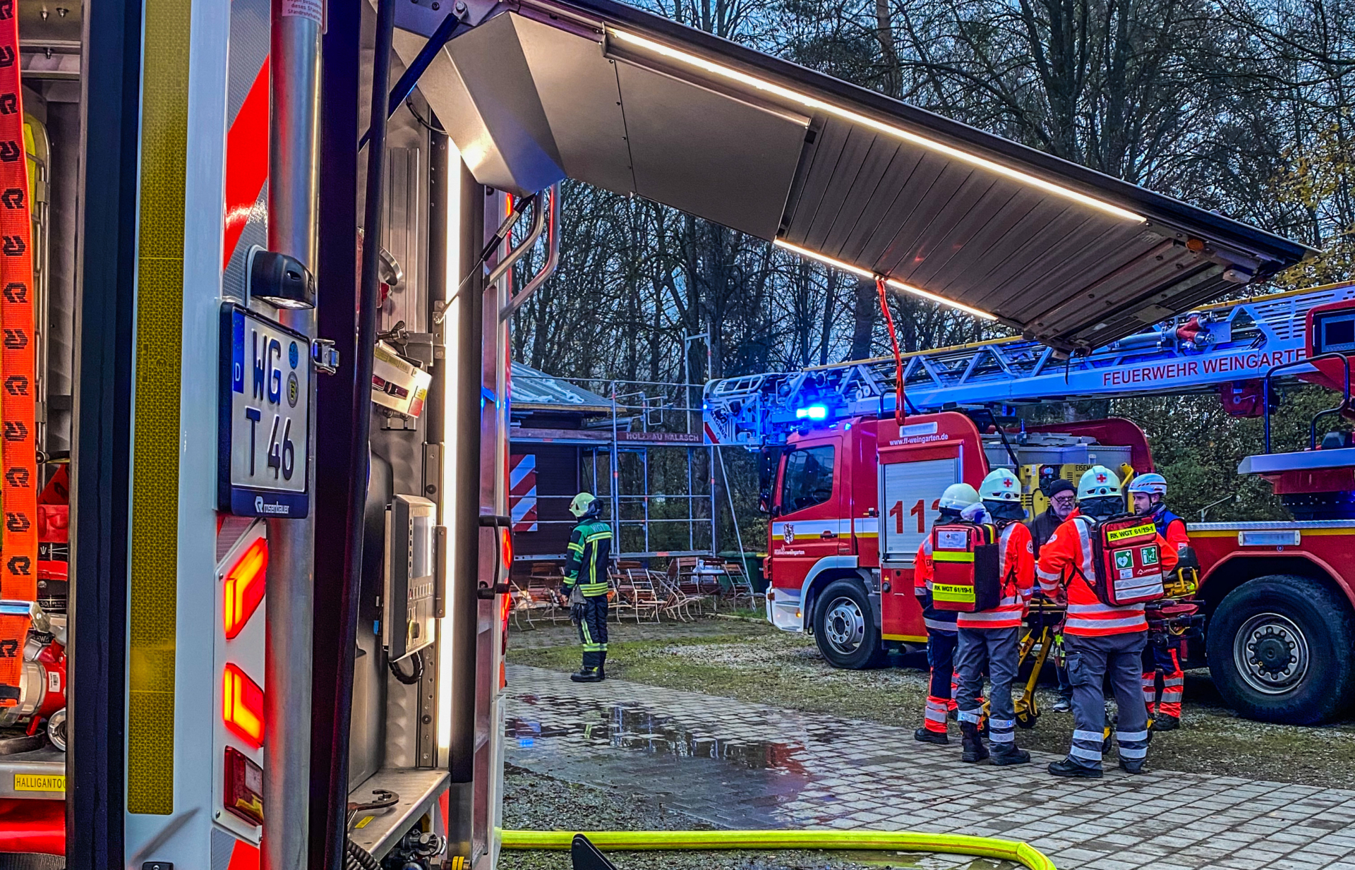 Fahrzeuge: KdoW, ELW, HLF, DL(A)K, LF-1, GW-HY, GWT