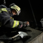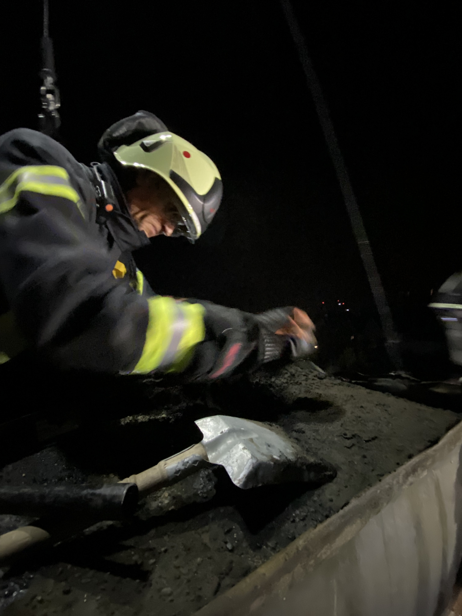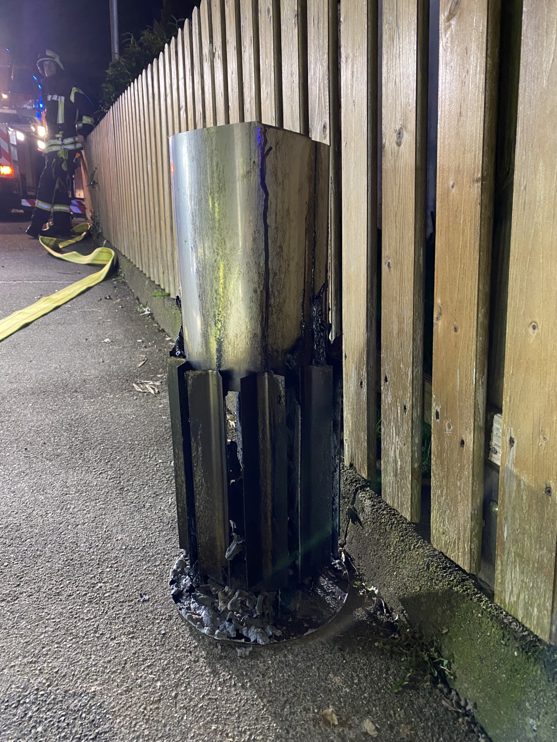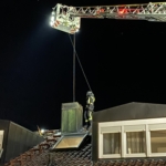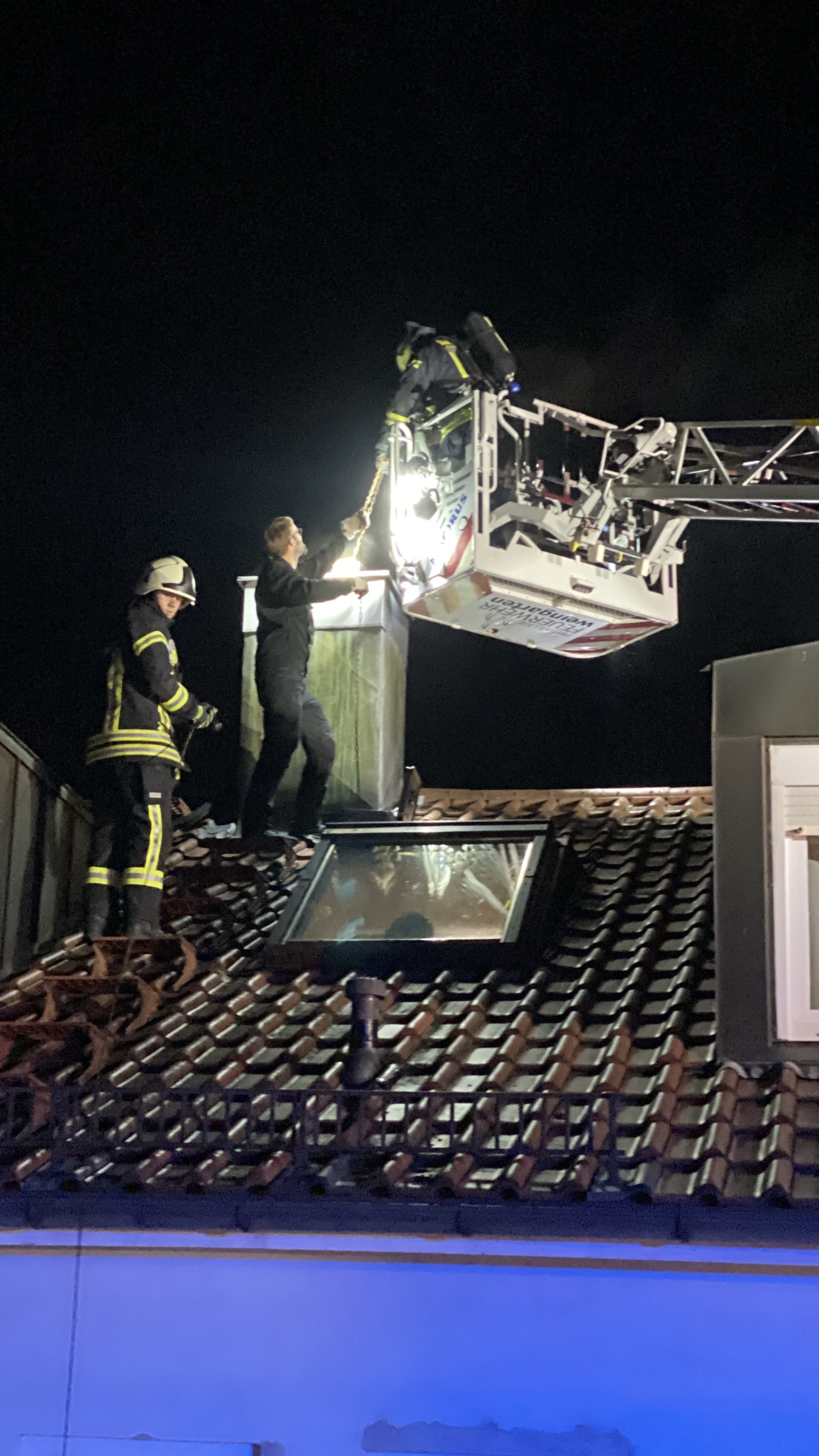Schornsteinkopf Verwahrung entfernt und Glutnester bekämpft. Verwahrung wieder aufgesetzt.