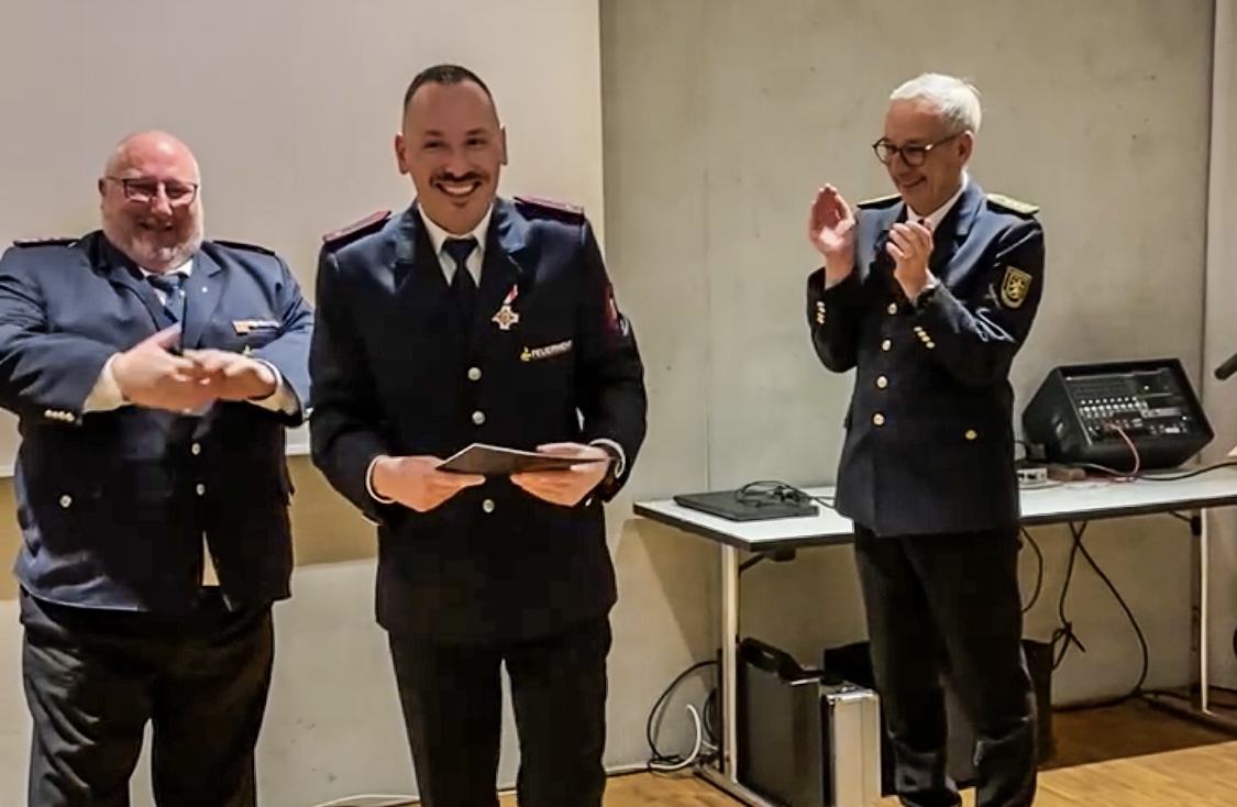 Oliver Cannello wurde für 25 Jahre Einsatzdienst mit dem Silbernen Ehrenzeichen des Landes Baden-Württembergs ausgezeichnet.